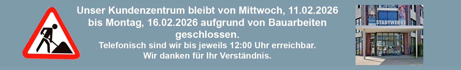 Heute Mittag, 12.02.2026, wurde eine Störung im Fernwärmesystem unseres Vorversorgers festgestellt. Von der Störung ist auch das Pumpensystem zur Umwälzung unseres Netzes betroffen, so dass wir auch die Eigenerzeugung im BHKW einstellen müssen. Die Reparaturarbeiten sind im Gange und werden voraussichtlich bis heute 18:00 Uhr dauern. Es ist mit einer Reduzierung der Warmwassertemperatur und niedrigeren Temperaturen der Heizung zu rechnen.